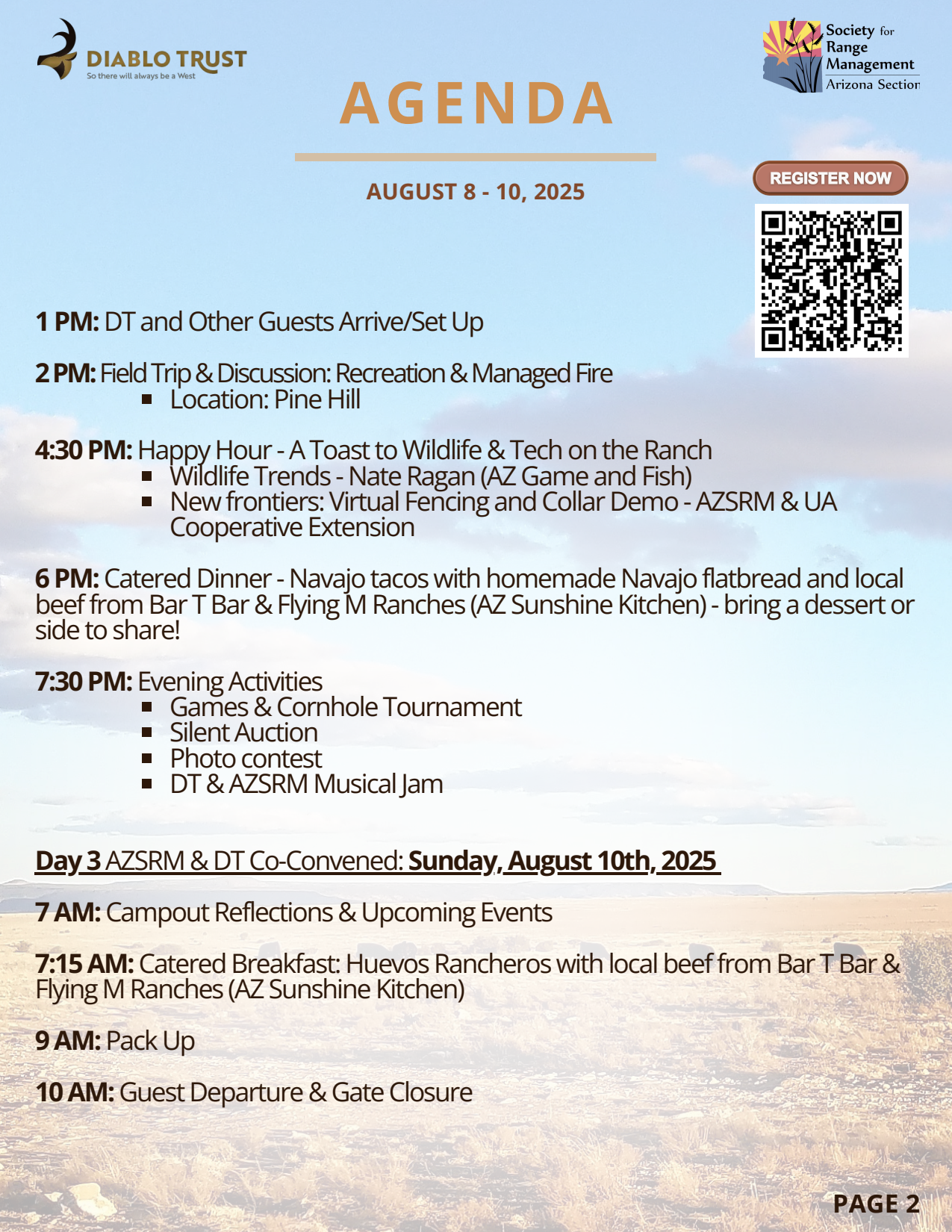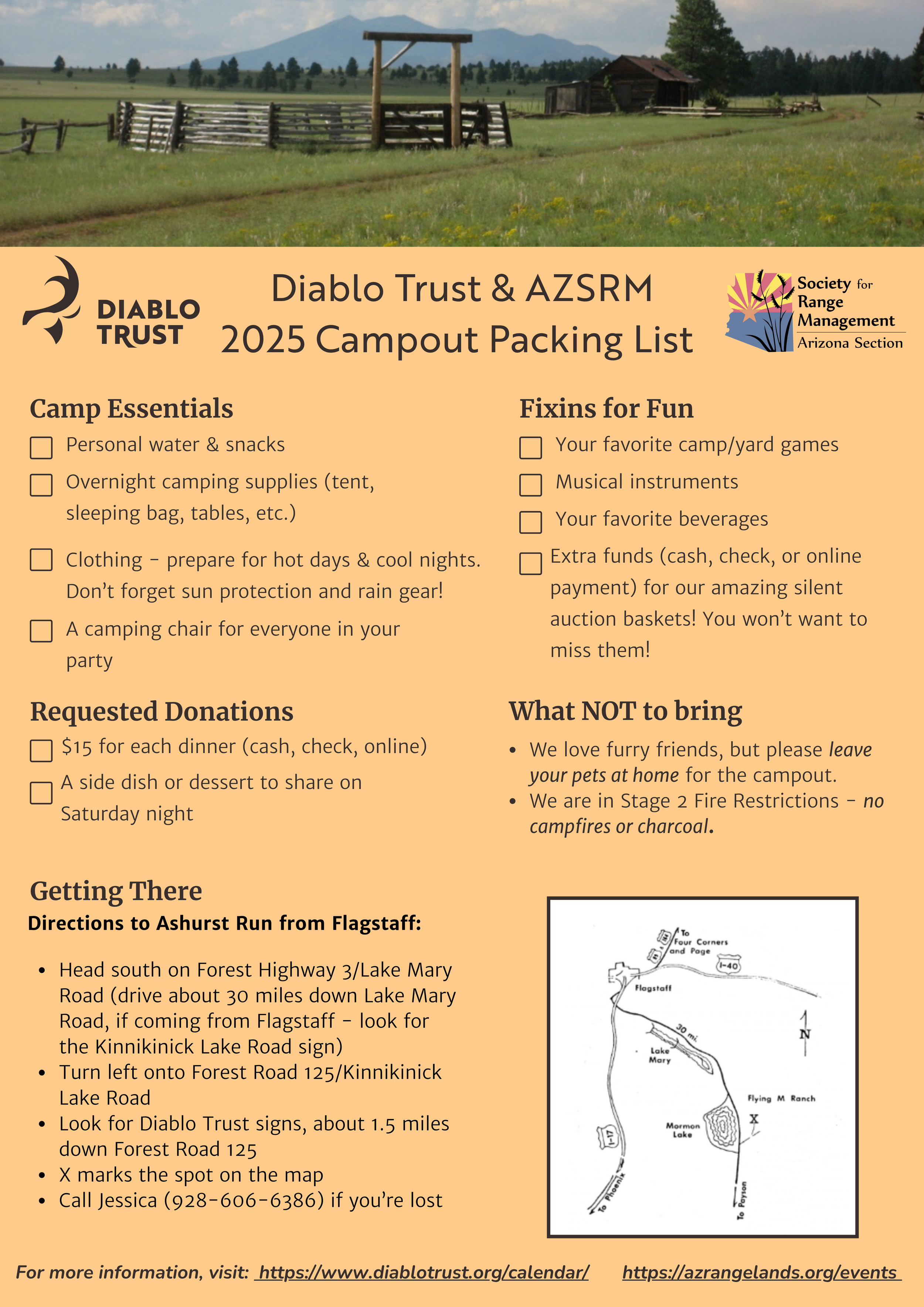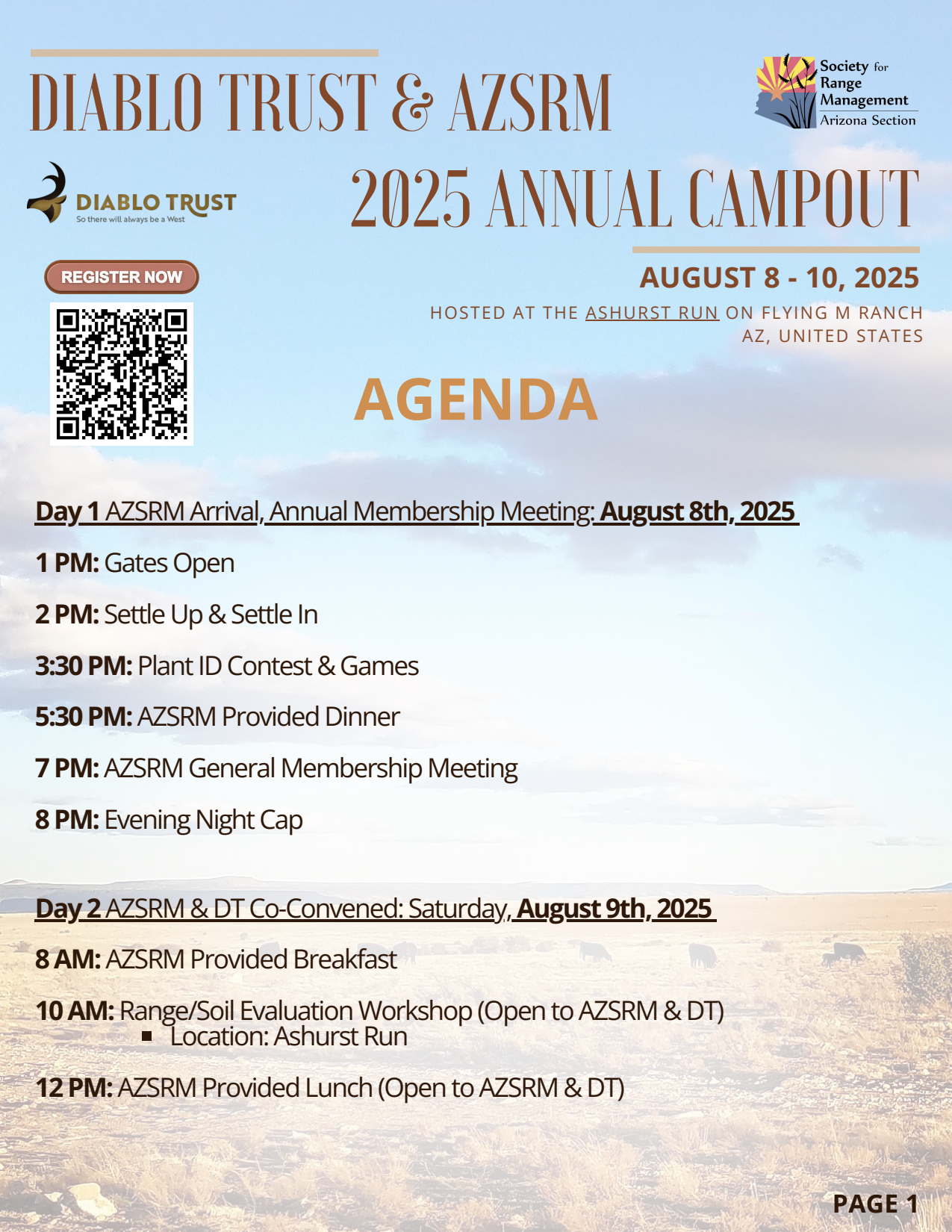 This year’s campout, co-hosted with the AZ Section of the Society of Range Management, blends expert-led field workshops with community connection, food, and fun — all set against the backdrop of Arizona’s working landscapes. Whether you're a rangeland professional, conservation partner, or curious newcomer, there’s something for everyone at Ashurst Run. Don’t forget to register!