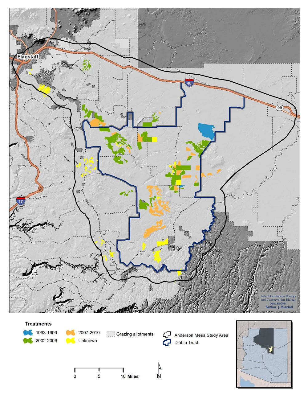 The CROP database documents the history of current and completed projects on the Diablo Trust land area. With the help of the Flying M and Bar T Bar ranches, United States Forest Service, Arizona Game and Fish Department, Arizona State Lands Department, Natural Resources Conservation Service, and ForestEra we have documented and mapped over 80 land projects.